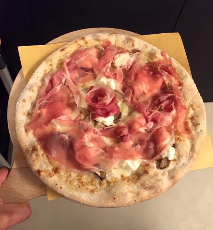 Porcini crudo – sauce, mozzarella, porcini, prosciutto